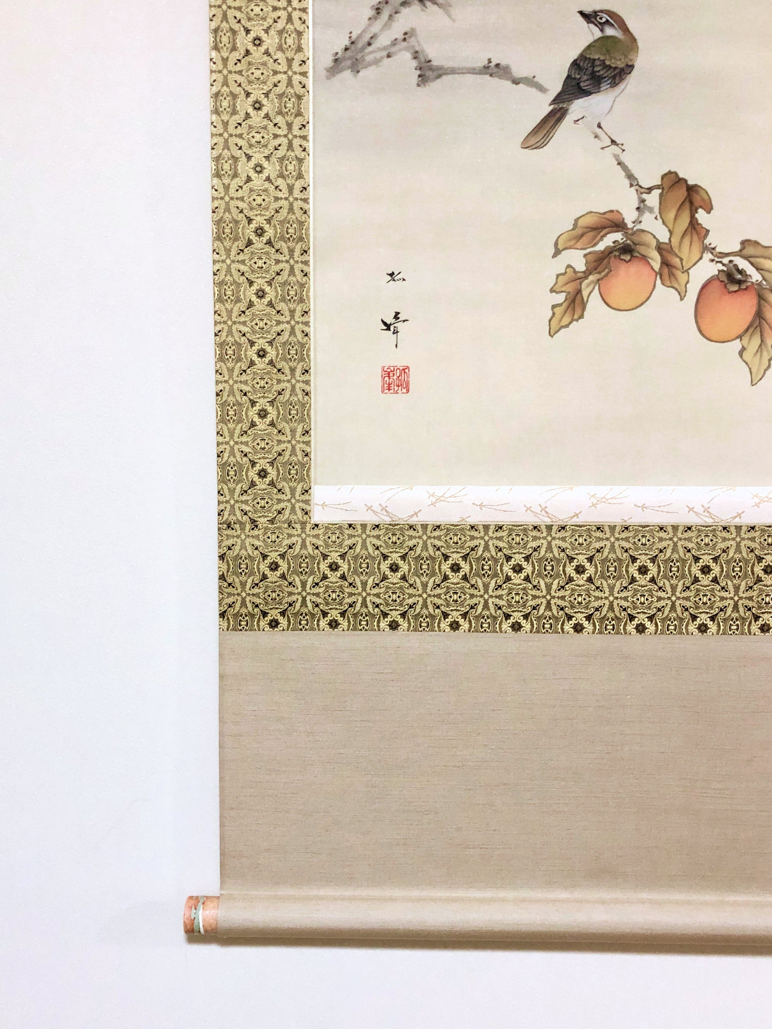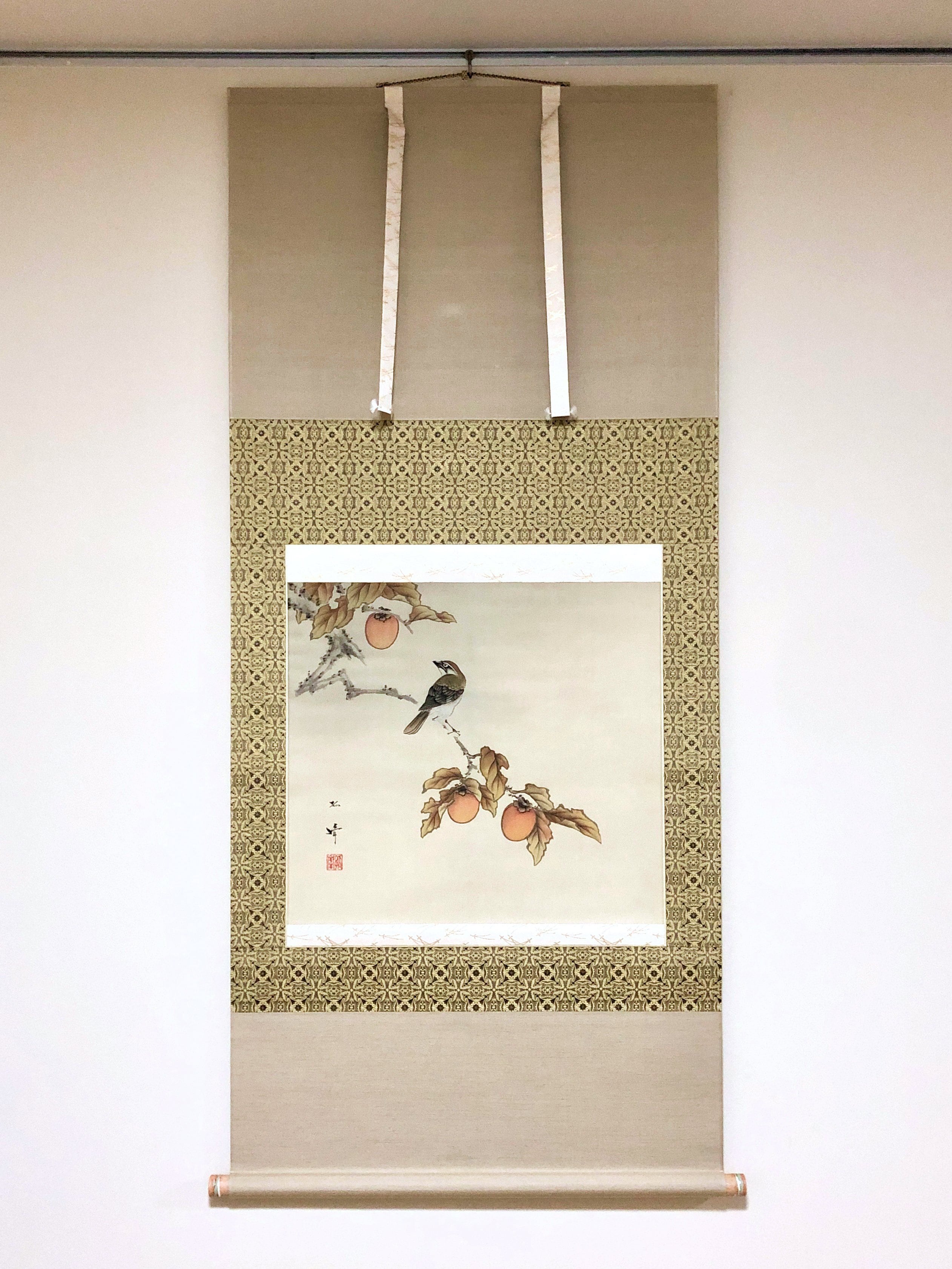 内田孤峰「百舌に柿」掛軸(尺八横)