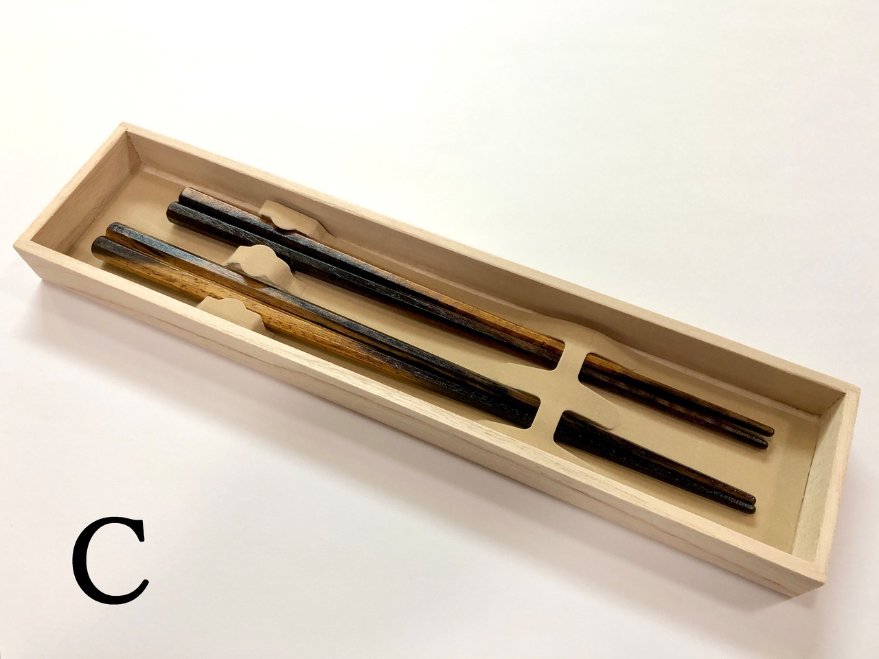この度、石川県産の黒柿だけを使い、能登(輪島)の職人が漆掛けをした、数量限定(今回はわずか4組だけ)のお箸が出来上がりました。