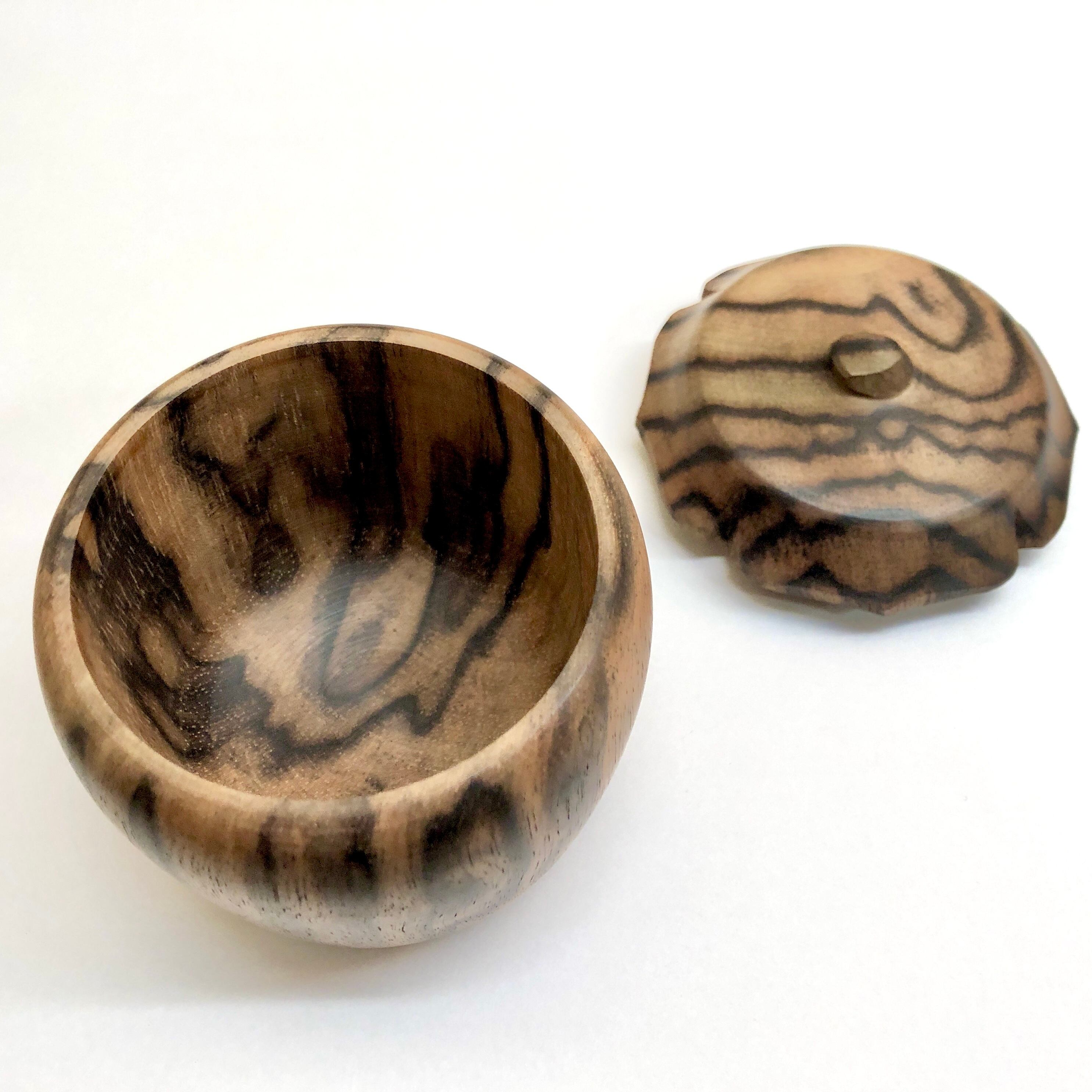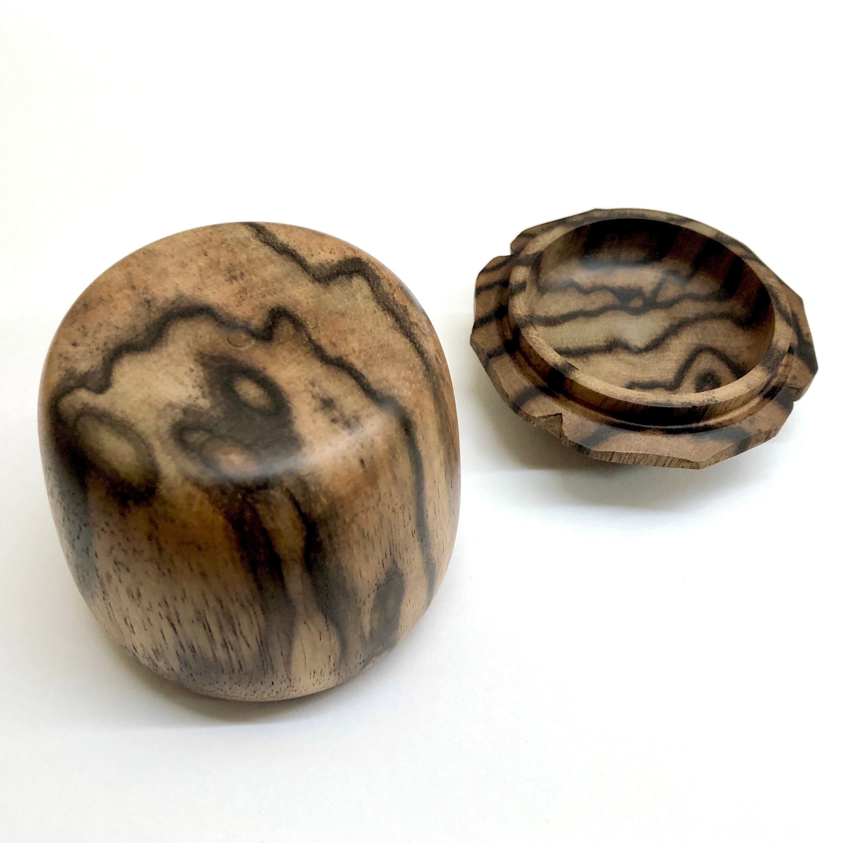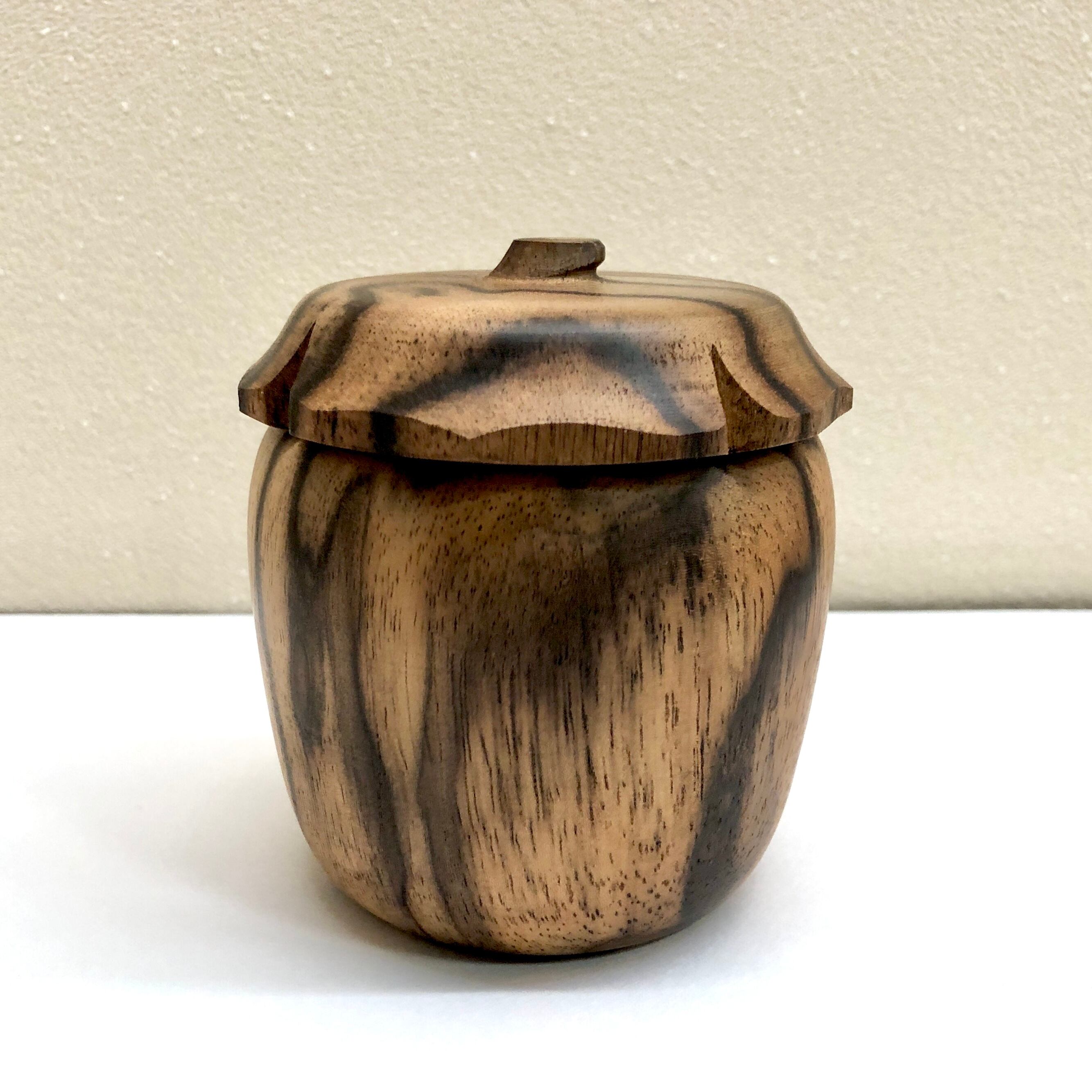 大変希少な黒柿の中でも、とくに杢目が美しいものだけを使い、熟練の職人が茶入れを製作いたしました。