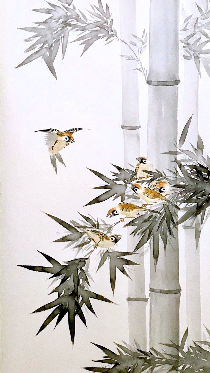 竹と雀の組み合わせは日本画の伝統的な構図です。