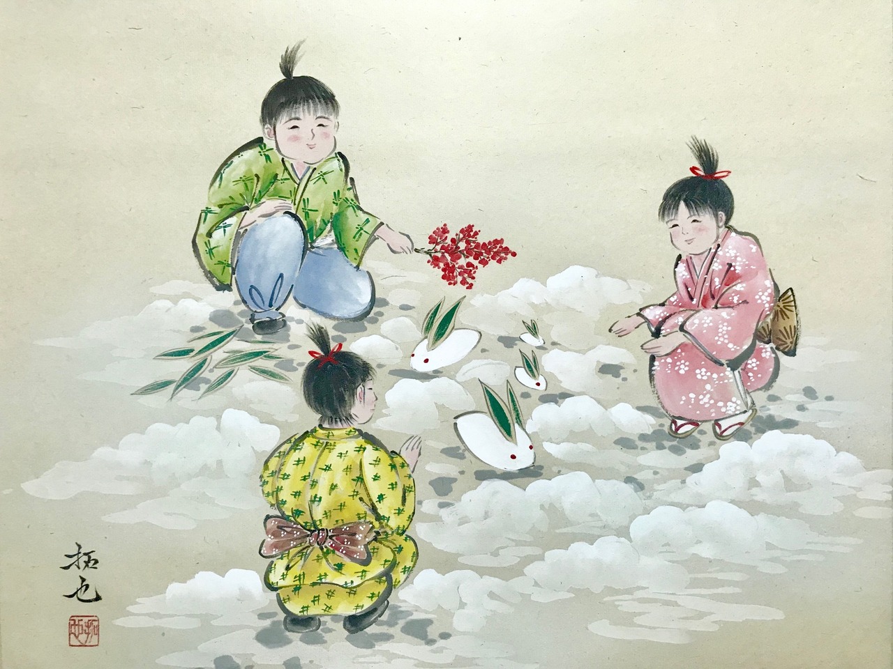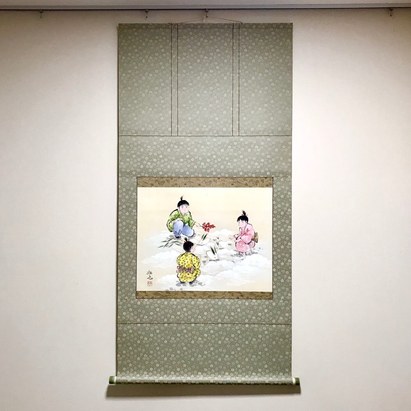 奥田拓也「雪遊び」 掛軸(尺八横)