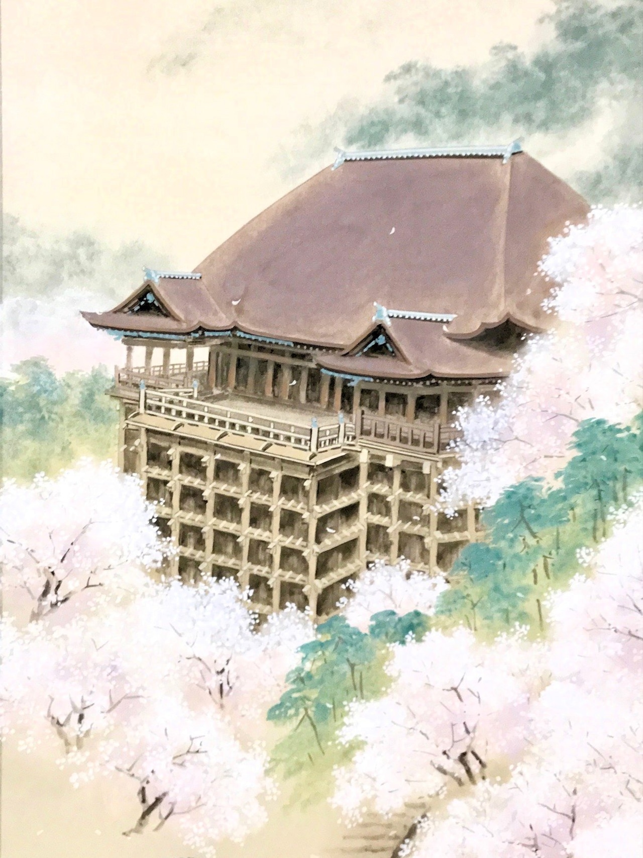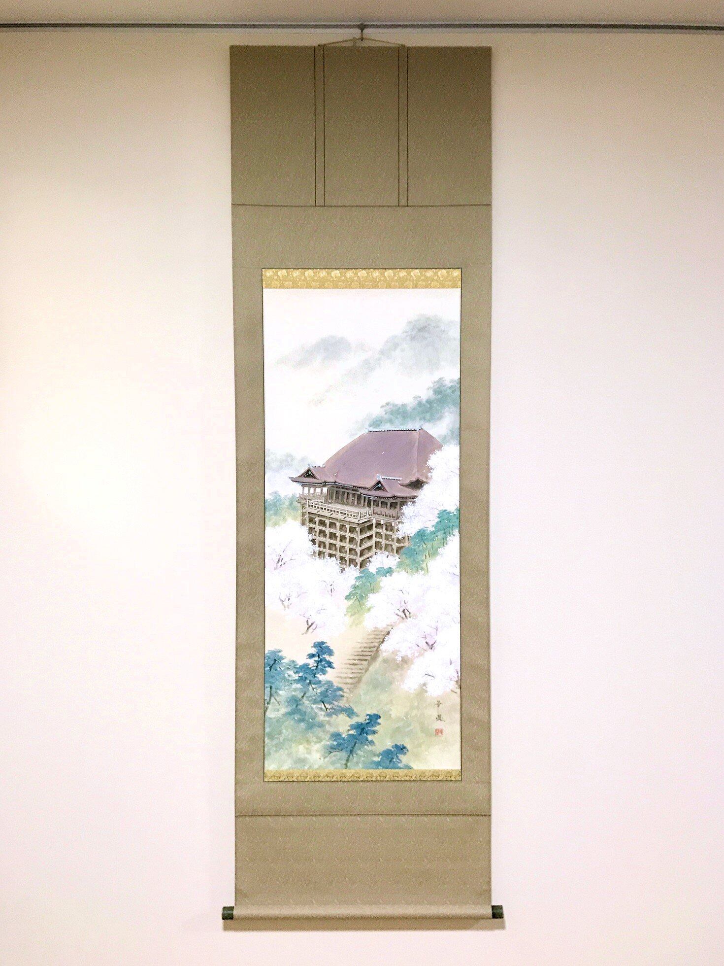 出口華鳳「桜花清水寺」掛軸(尺五立)