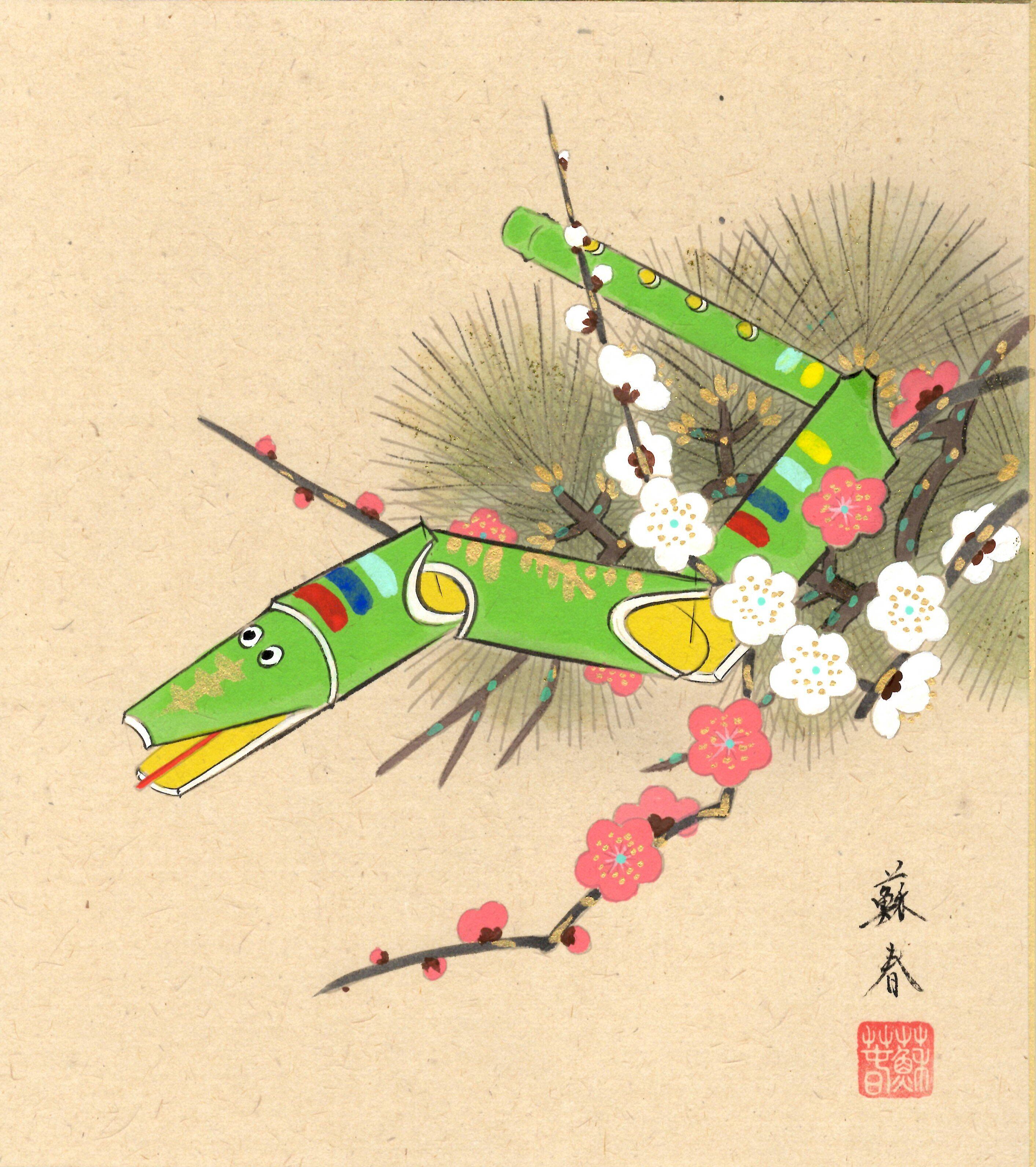 金武蘇春「巳(蛇)」干支色紙絵